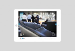 Given concerns the CBD building had lost its premium perception, we focused the message on its outward looking location at Sydney’s central axis – and created a digital app, provided to prospects ‘floating’ as a USB in a clear membrane container.